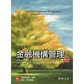 Saunders和Cornett兩位教授合著的《金融機構管理》(Financial Institutions Management: A Risk Management Approach)一書除深入探討各種類型金融機構的業務內容外,主要針對金融機構營運風險來源、風險衡量與分析方法,以及如何管理與接受監理模式進行深入探討。